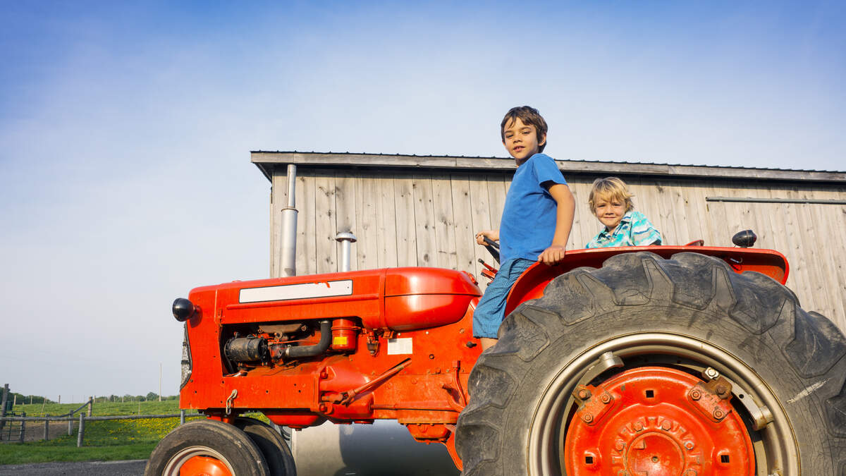At just eight, Jackson’s expertise in farm equipment is evident as he confidently questions a salesperson about tractors at a farm show.